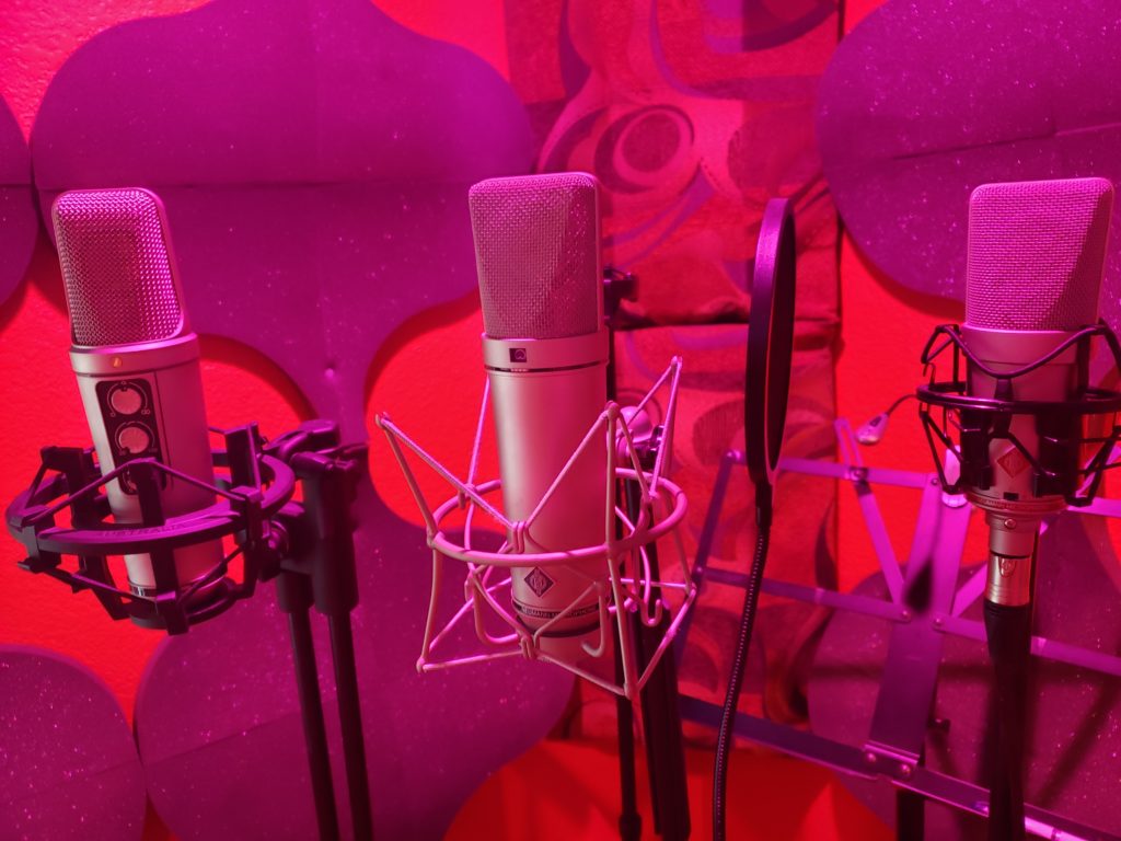 DuneTunes Recording has a perfectly tuned 8×6 vocal isolation booth. This space has double thick walls and ceiling, sound proof glas,s and was designed to have complete absorption using both custom acoustic bass traps and wall panels. The vocalist has a direct line of sight and direct link to the control room via a personal headphone hear-back/talk-back system. We offer numerous microphones from Nuemann, Rode, Sennheiser, AKG, and many more.